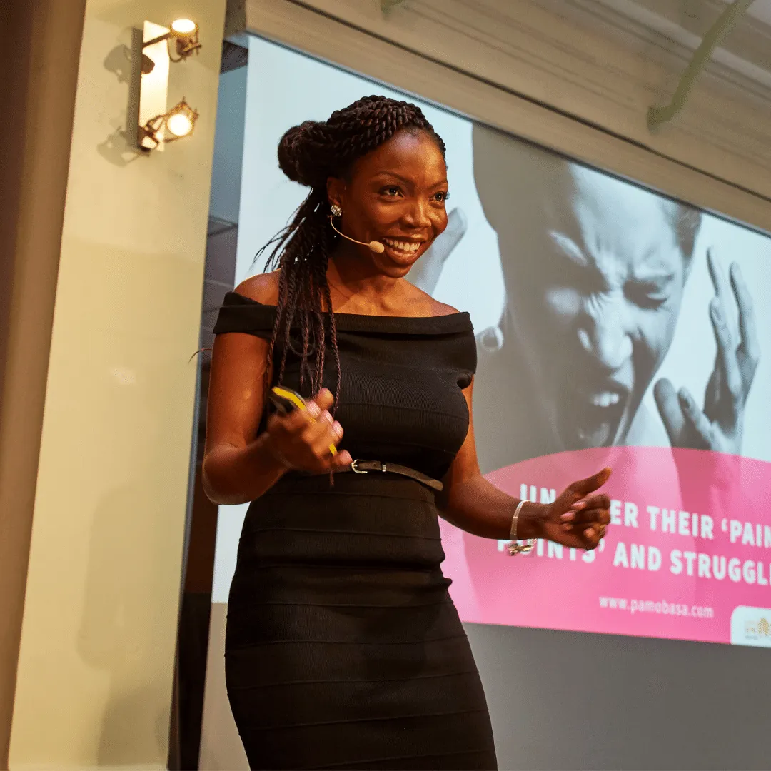 Pam Obasa is the founder of The Lucrative Lady and Branderry.com. She is a highly sought-after business coach, 2 Comma Club Award winner and international speaker specializing in Sales, Sales Systems and Storytelling for marketing.